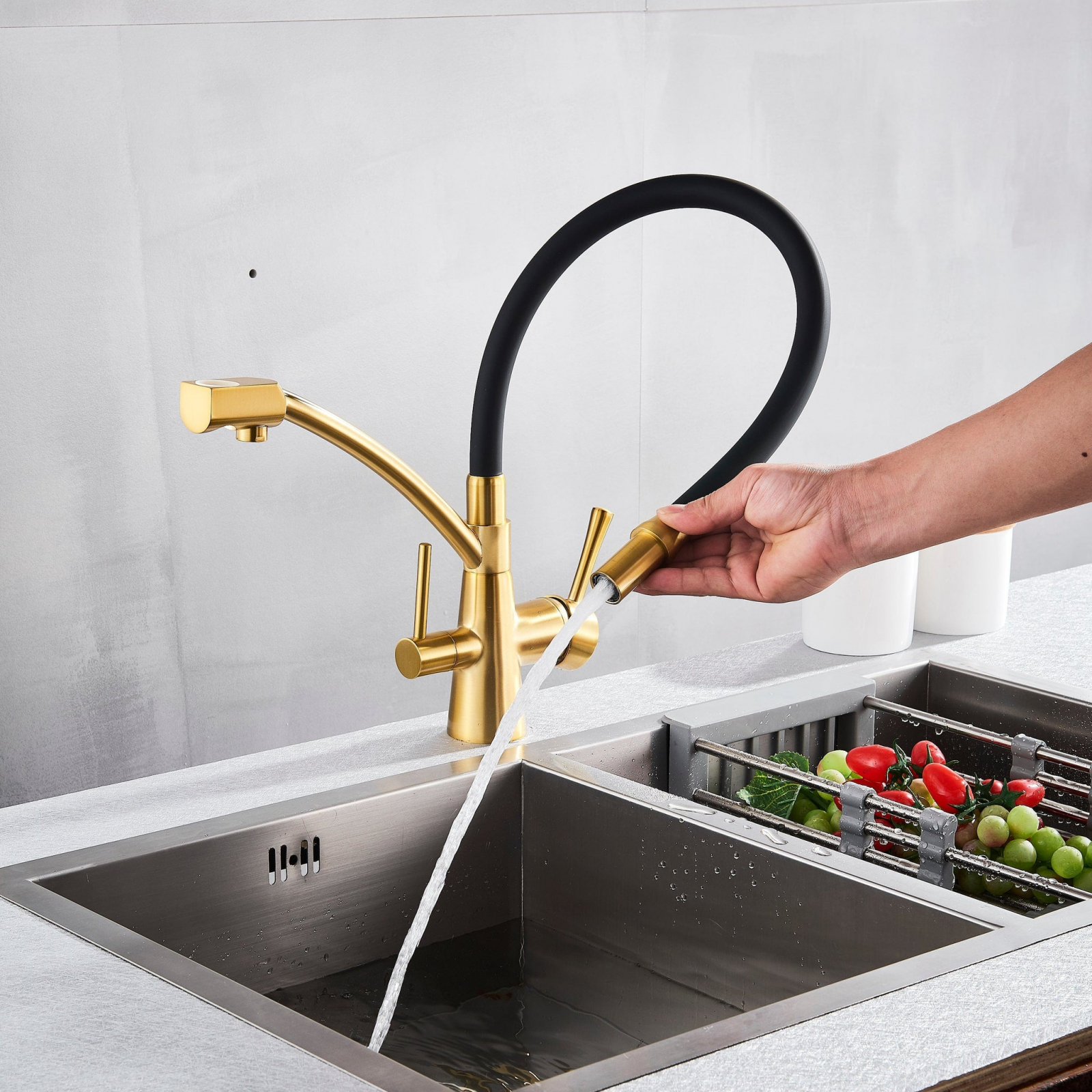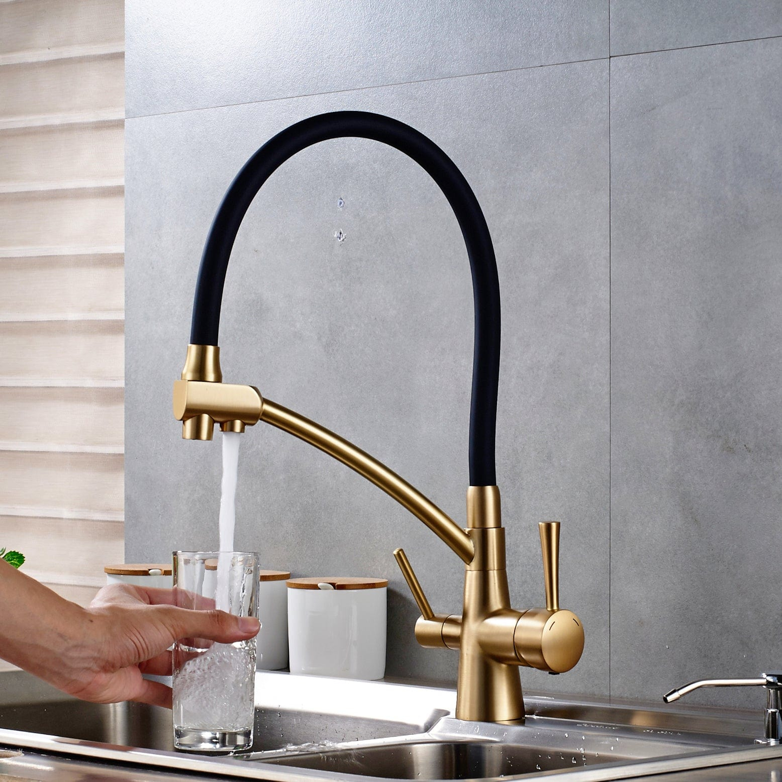 Baterie bucatarie pt. apa filtrata cu 2 cai negru/auriu